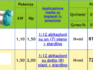 Utilizzo: aumento pressione idrica – sollevamento acqua