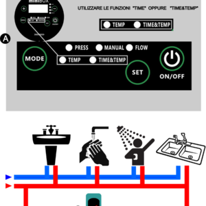 Abbinando il kit pressione costante si gestisce in base a un tempo di funzionamento e alle soglie di temperature (minima ON e massima STOP) impostabili dall’utente,