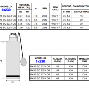 MAX 200 X series MAX modello – 5 diametro 5” (130mm) – 200 serie – CG completa di galleggiante