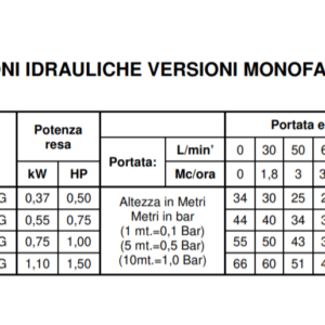 condensatore di lunga durata integrato; Massima quantità di sabbia ammessa: 120 gr/mc; Numero massimo di avviamenti orari:40;